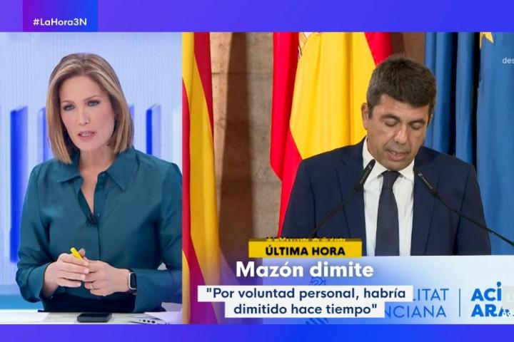 En La Hora de La 1 han puesto toda la comparecencia en directo y justo cuando Mazón ha terminado, su presentadora Silvia Intxaurrondo ha tomado la palabra para sentenciar al dirigente del PP por no acordarse de las víctimas y por dejar varias cuestiones en el aire: cuándo se va, si deja el acta o quién va a ser su sucesor.