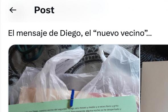 "Hola vecinas/os soy Diego, vuestro vecino del segundo. Tengo seis meses y medio y a veces lloro y grito mucho (a veces grito de emoción, no puedo contenerme). Seguramente alguna noche os he despertado y algún día no os he dejado descansar. Ahora estoy esperando a que me salgan los dientes y estoy un poco más chinchoso (aunque eso os lo imagináis porque me escucháis todos los días)", empieza diciendo la nota.