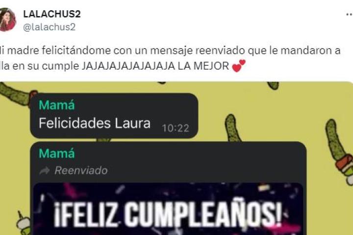 "Felicidades Laura", le ha escrito su madre en un inicio. Después, lo que ha desencadenado la risa de su hija: un GIF reenviado que le dedicaron el día de su cumpleaños.