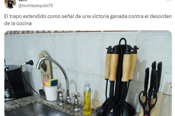 La forma en la que ha colocado el trapo en la cocina representa a muchos: "Un símbolo de victoria"
