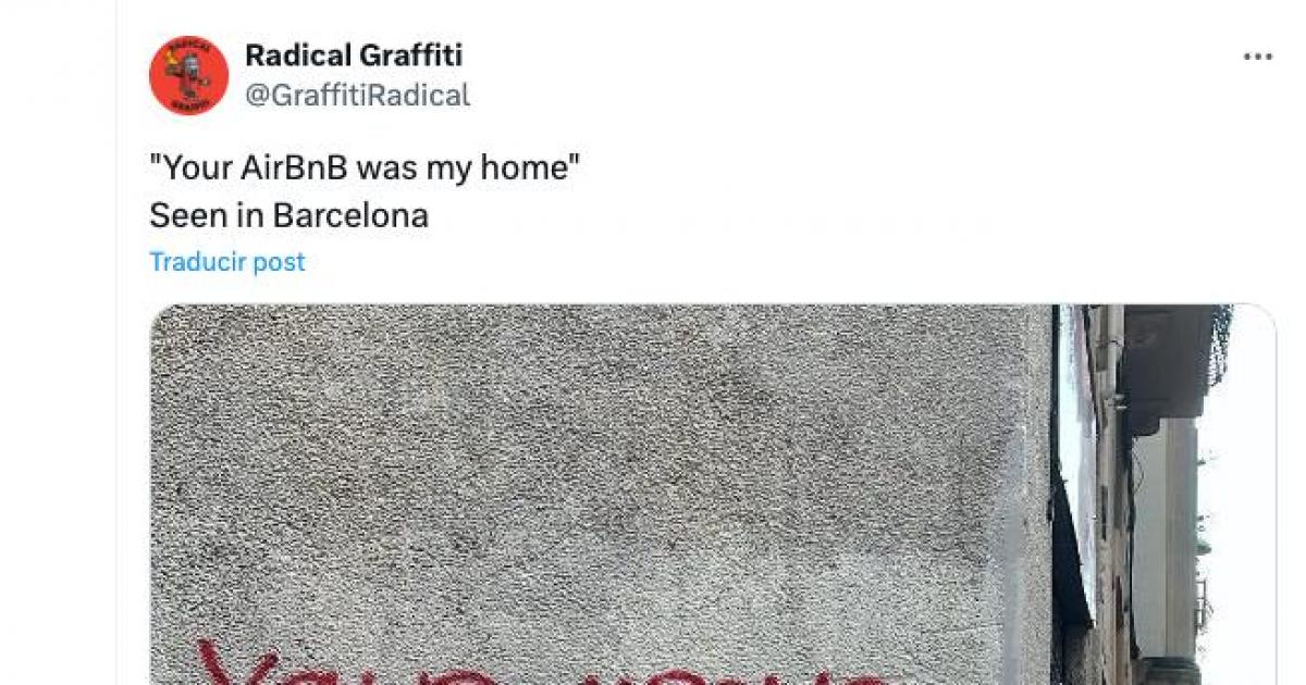 Concretamente, el potente lema que pintaron en inglés en una esquina de la pared de una casa de Barcelona: "Tu AirBnB era mi casa".