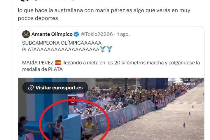 Una de las personas que se ha percatado del bonito gesto de la australiana ha sido la usuaria de X @andrearomero7_, ha escrito: "Lo que hace la australiana con María Pérez es algo que verás en muy pocos deportes".