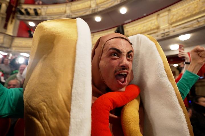 Un hombre vestido con un disfraz de salchicha se ha puesto a gritar "¡soy rica!" tras conocerse el Gordo.