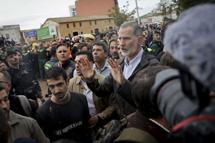 Así lo ha comunicado Felipe VI durante su intervención tras presidir una reunión en el CECOPI, después de que hayan sido recibidos en Paiporta con gritos, insultos y lanzamiento de objetos y barro durante su recorrido por las calles del municipio.