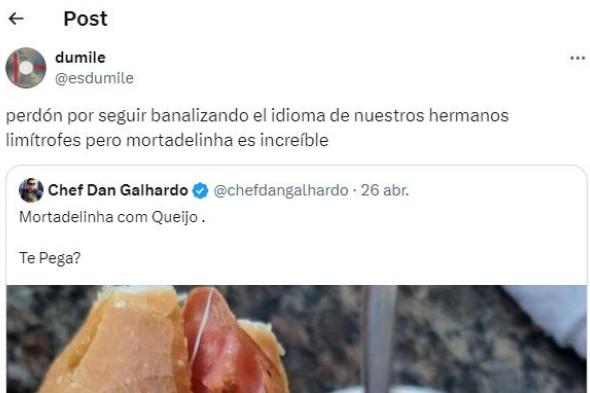"Perdón por seguir banalizando el idioma de nuestros hermanos limítrofes, pero mortadelinha es increíble", ha escrito el usuario argentino @esdumile. Latinoamericanos y españoles se han unido por igual para halagar esta palabra: "Es una necesidad desbloqueada".