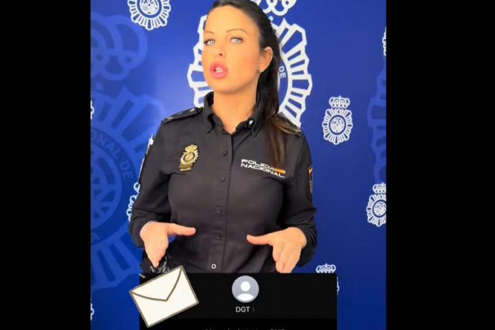 "Alto, si vas demasiado rápido, puedes caer en esta estafa, si tú también has recibido este mensaje, debes saber que es fraudulento y no te lo ha enviado la DGT", ha advertido la miembro de la policía al principio del vídeo, publicado en su perfil oficial de TikTok (@policia), cosechando casi medio millón de visitas.