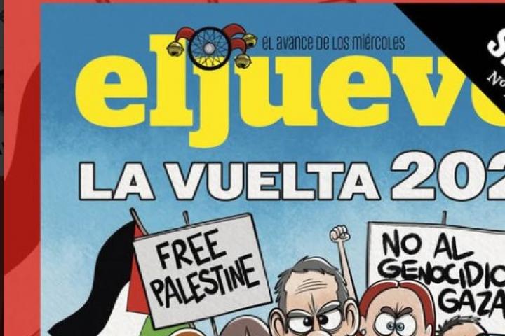 La portada que la revista satírica El Jueves publicó hace unos días está teniendo ahora un gran eco, tras las protestas en favor de Palestina que han obligado a suspender la última etapa de La Vuelta ciclista España, que iba a celebrarse en Madrid.