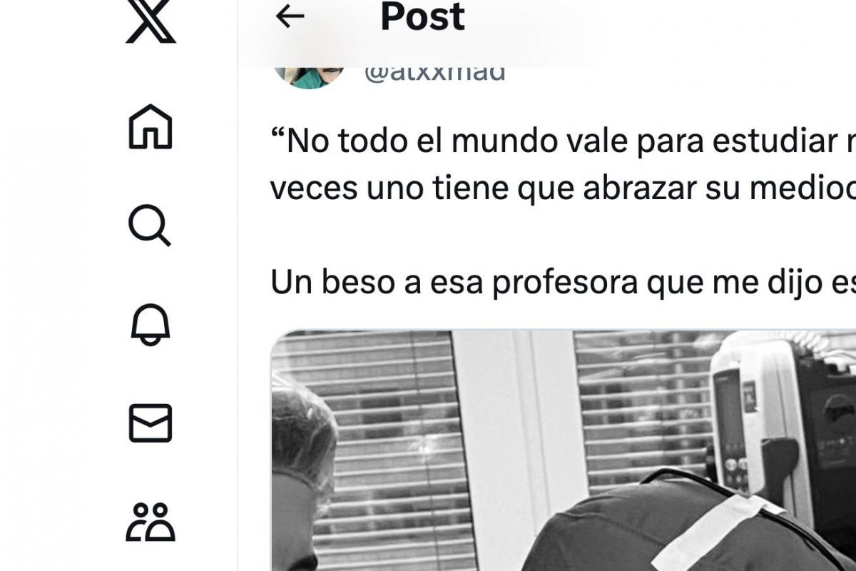 Un usuario de X (antes Twitter) ha querido acordarse de su profesora de hace 10 años cuando le dijo: "No todo el mundo vale para estudiar ni hacer cosas que le gusten, a veces uno tiene que abrazar su mediocridad".