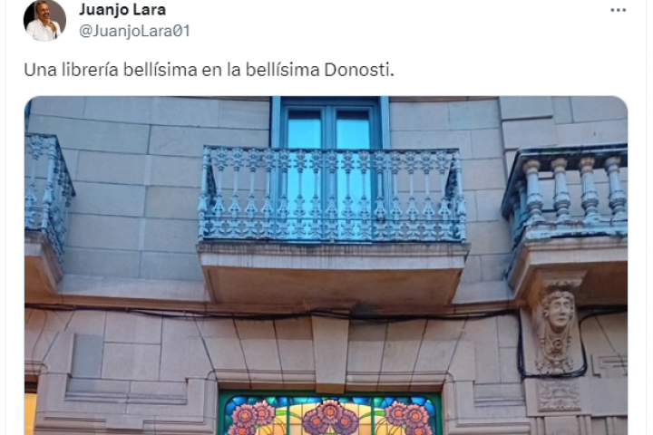 "Una librería bellísima en la bellísima Donosti", ha escrito, junto a la imagen. El tuit se ha hecho viral en las pocas horas que lleva publicado y ya ha superado el millar de me gusta y las 24.000 reproducciones.