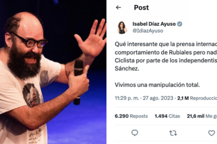 Pero este domingo, justo una semana después, Ayuso entró con todo en la polémica y mezcló a Rubiales con el independentismo: "Qué interesante que la prensa internacional se ocupe del impresentable comportamiento de Rubiales pero nadie denuncie el boicot a la Vuelta Ciclista por parte de los independentistas, los que negocian con Sánchez. Vivimos una manipulación total".