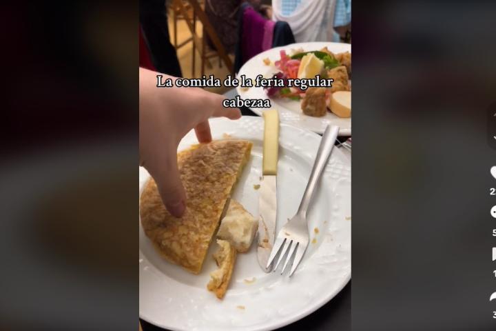 La cuenta de TikTok @pruebaconnosotros1 ha compartido con sorpresa cómo era la tortilla que le sirvieron en una caseta de la Feria de Abril de Sevilla.