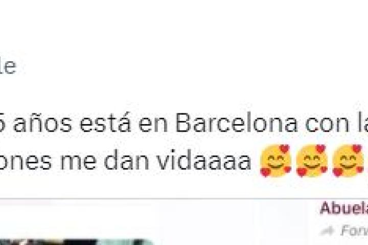 "Mi abuela de 85 años está en Barcelona con las amigas y sus fotoactualizaciones me dan vida", ha escrito en el tuit, acumulando más de medio millón de reproducciones y 18.000 'me gusta' en apenas unos días.