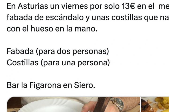 "En Asturias un viernes por solo 13€ en el menú del día puedes tener una fabada de escándalo y unas costillas que nada más cogerlas te quedas con el hueso en la mano", ha relatado.