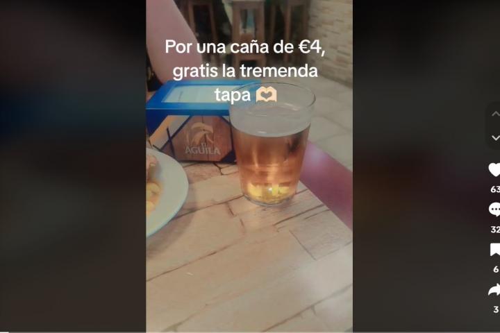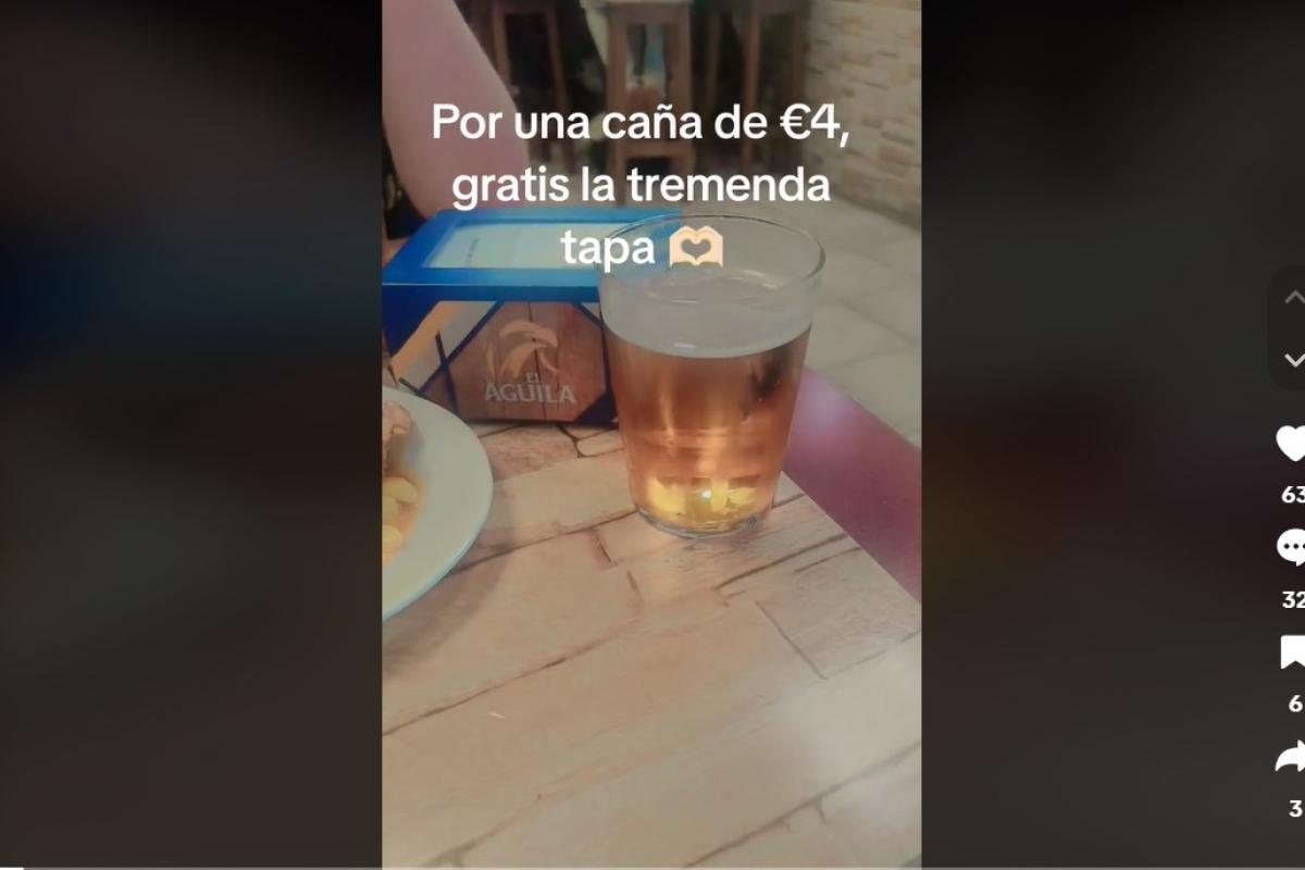 La tapa que le han puesto en un bar de Madrid a una clienta que pidió una caña, por la que le cobraron cuatro euros, ha generado un intenso debate en TikTok.