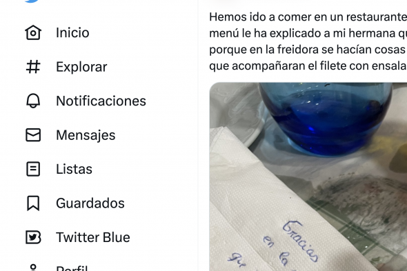 Le dejan este mensaje a la camarera en una servilleta por el gesto que ha tenido con su hermana