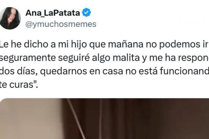 La usuaria de X @ymuchosmemes (o Ana_LaPatata) ha contado a través de su cuenta de la red social X cuál ha sido la ocurrente respuesta de su hijo pequeño al decirle que quizá no pueden ir a la playa porque ella está enferma.