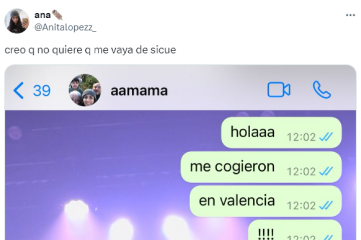 La usuaria de la red social X, antes conocida como Twitter, @anitalopezz__ ha publicado una captura de la conversación con su madre cuando le anunció que se iba a Valencia por SICUE, un programa de movilidad en el que los universitarios realizar sus estudios durante un periodo de tiempo en otra universidad española.