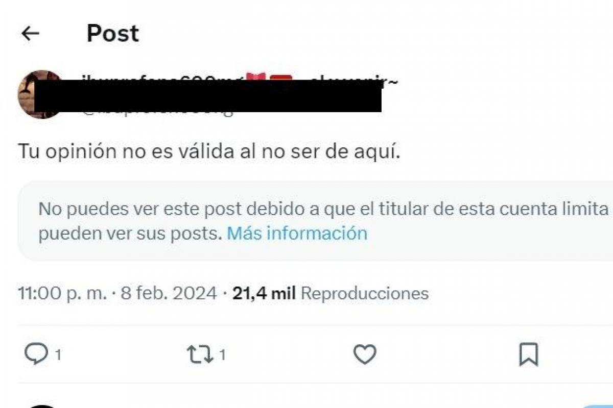 "Aquí en Cataluña no eran tan respetuosos", ha escrito Elá, a lo que un usuario le ha replicado: "Tu opinión no es válida al no ser de aquí".