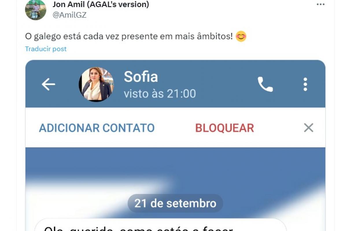 Es exactamente lo que ha mostrado en Twitter el usuario @AmilGZ, que ha subido a esa red social un pantallazo de WhatsApp que le mandó un estafador haciéndose pasar por una mujer llamada Sofía. Lo curioso de todo es que se lo escribió en gallego, consciente de dónde era su víctima.