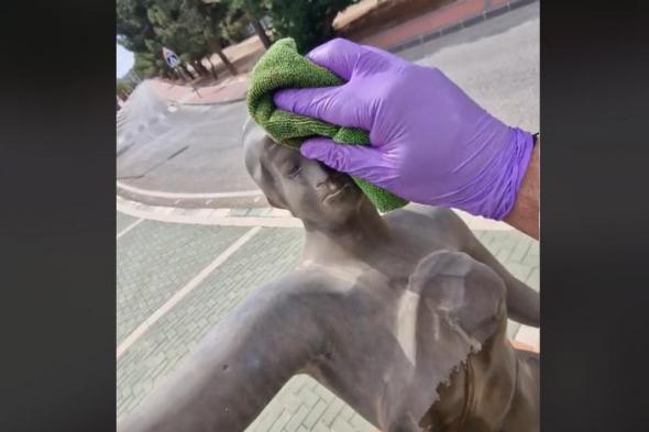 Desde hace meses lleva viendo unas figuras de bronce que ha dicho que están "prácticamente abandonadas a su suerte" en Molina de Segura (Murcia). Mientras limpiaba, un coche oficial de policía estacionó, aún sin bajarse del coche, observando lo que hacía. "Como todo mobiliario urbano, constitucionalmente está para uso y disfrute de sus ciudadanos, lo considero mío", ha expresado.