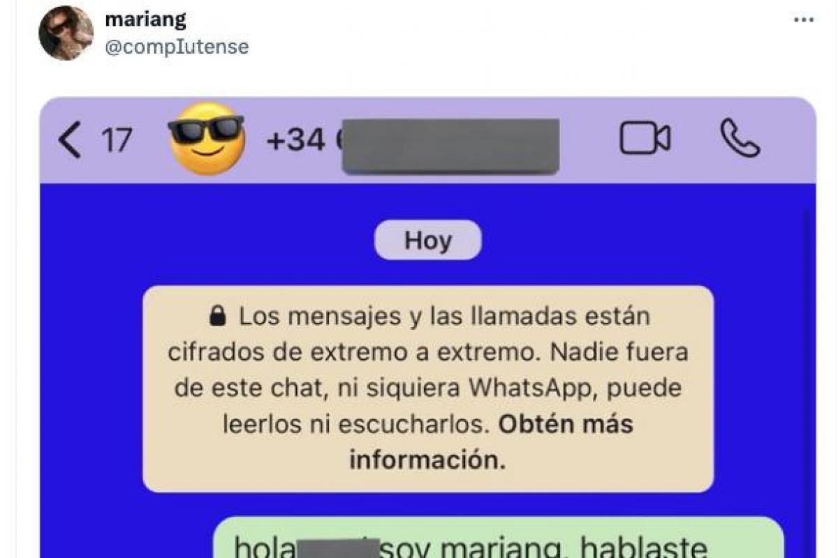 Tal y como se puede ver en la captura de pantalla de la conversación de WhatsApp que ha compartido, el intercambio de mensajes no ha podido ser más breve e intenso. Con cinco mensajes ha sido suficiente.