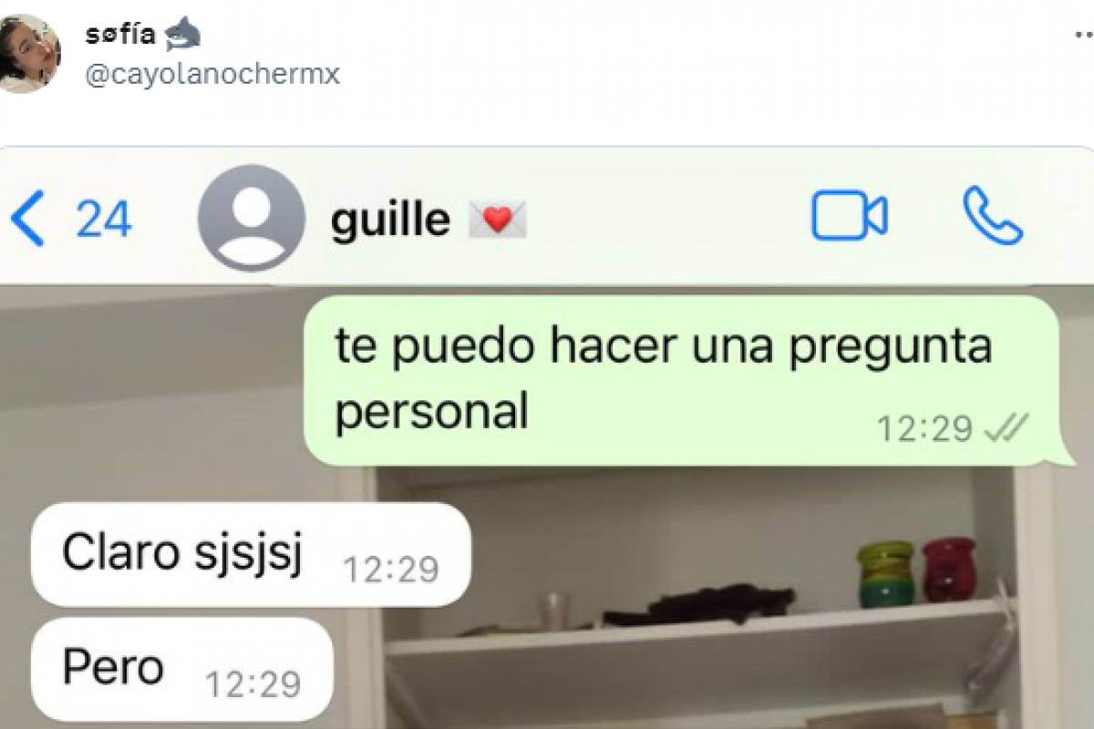 En las últimas horas se ha hecho muy viral la que ha publicado la tuitera Sofia, conocida en la red social como @cayolanochermx. La joven ha compartido un pantallazo de la conversación que ha tenido con su contacto Guille y la pregunta que este le ha hecho.
