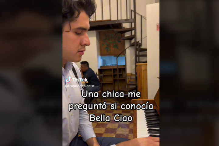 Como se puede ver en el vídeo publicado por él mismo, @frnaciscopianist, una mujer se acerca a preguntarle si conoce la mítica canción italiana Bella Ciao, inconfundible para todo el mundo.