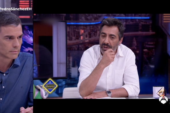 De vuelta al adelanto electoral, Pablo Motos le ha puesto a Sánchez las palabras de Juan del Val sobre las elecciones, de las que dijo que eran un "fraude": "Ya sabemos que es legal, ya sabemos que obedece a los plazos legales, pero a mí me parece que es pretender alterar un resultado".
