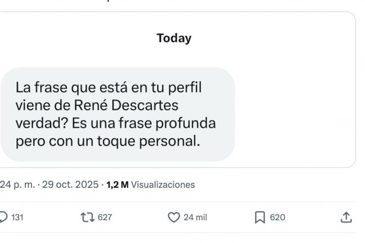 Le pregunta si la frase de su perfil es de Descartes y se lleva todos los aplausos cuando enseña de quién es realmente