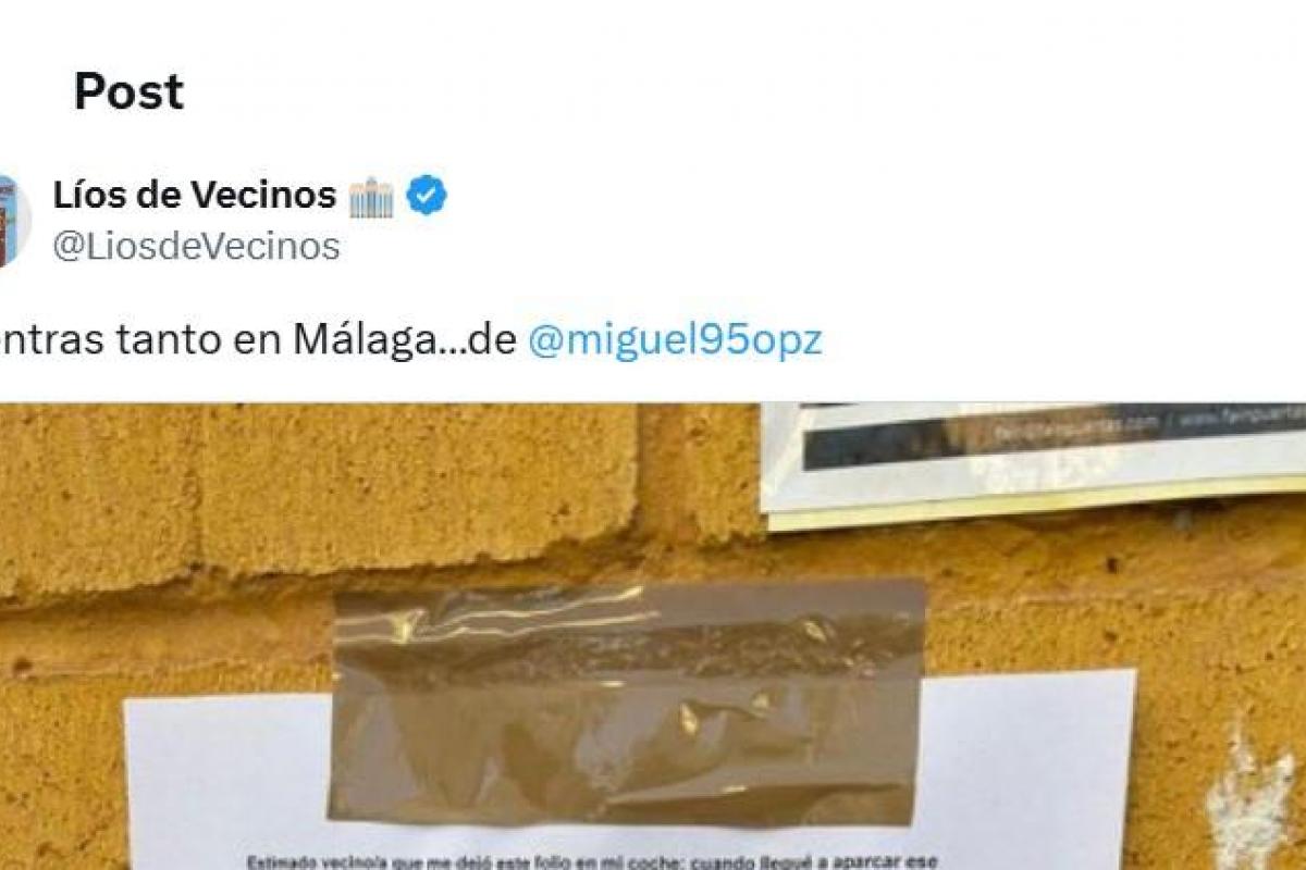 Le rayan el coche por aparcar mal y él responde con esta nota que debería hacer reflexionar a todos