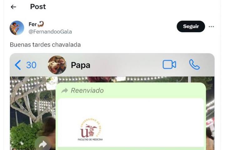 El usuario de Twitter @FernandooGala ha publicado la conversación de WhatsApp que ha tenido con su padre al informarle que le ha tocado "una plaza de aparcamiento en la universidad".