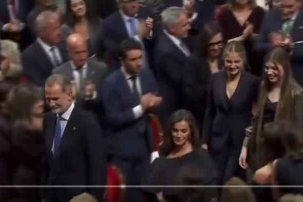 La familia real ha entrado en el Teatro Campoamor de Oviedo al inicio del acto y, cuando iban caminando por el pasillo, han visto que allí, de pie aplaudiéndoles entre el público, estaba Paloma Rocasolano, la madre de Letizia.