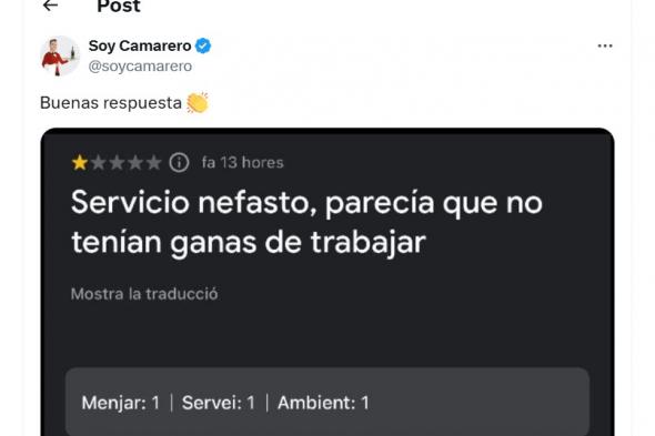 La respuesta la ha publicado en X la popular cuenta @soycamarero con gran éxito, ya que en apenas dos días supera los 5.000 me gusta.