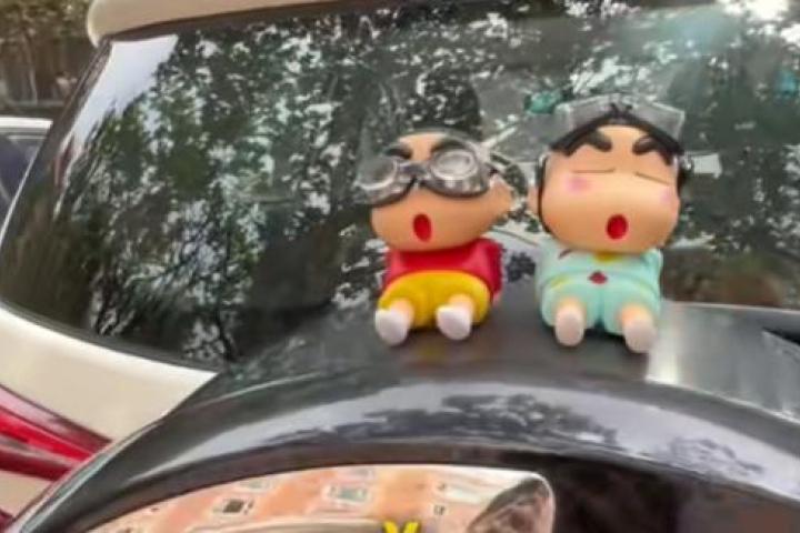 "Esto lo más surrealista que me ha pasado en mucho tiempo. Teníamos dos muñequitos de Shin Chan que le pusimos al coche, y esta mañana al despertarnos solo había uno", ha comenzado contando la española.