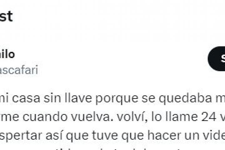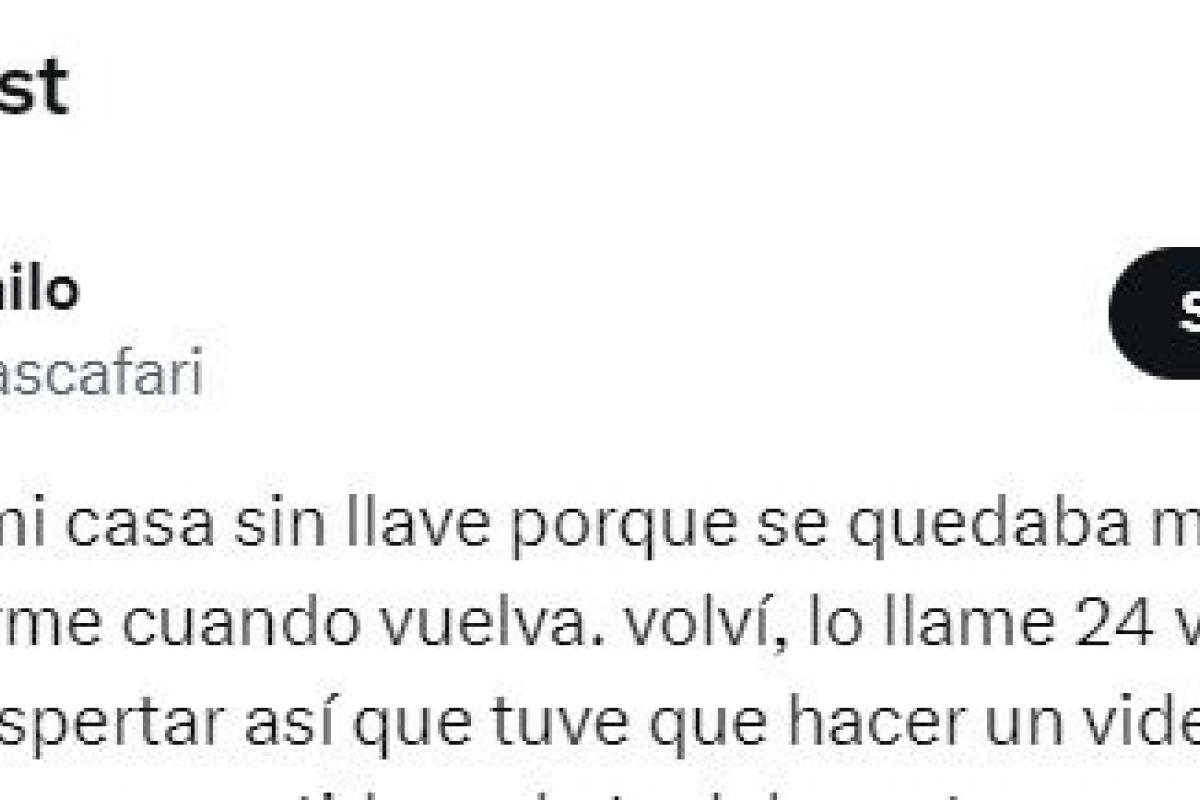 La usuaria de X @Frascafari ha relatado lo que le ha ocurrido con su novio tras salir de casa sin llaves, ya que su idea era que este le abriera la puerta debido a que iba a quedarse en el interior de la vivienda.