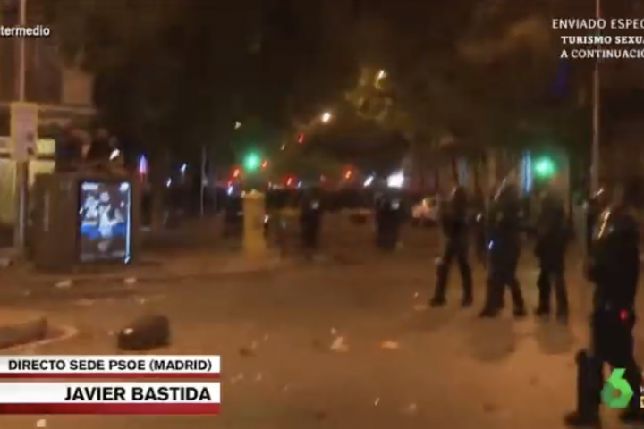 Más de 7.000 personas se han concentrado ante la sede del partido socialista y alrededores en una marcha multitudinaria que se ha saldo con una carga policial. Algunos manifestantes han entonado loas a Franco, han proferido gritos homófobos y han insultado incluso al rey de España.