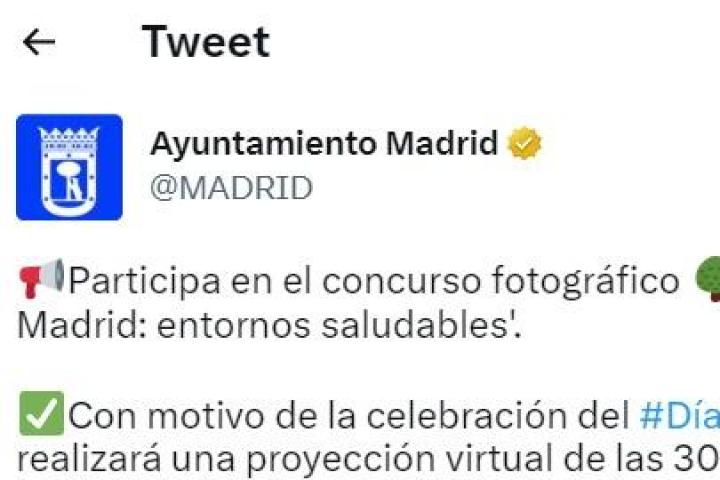 El Consistorio que lidera José Luis Martínez-Almeida invitó a sus seguidores a participar "en el concurso fotográfico, Árboles en la ciudad de Madrid: entornos saludables".