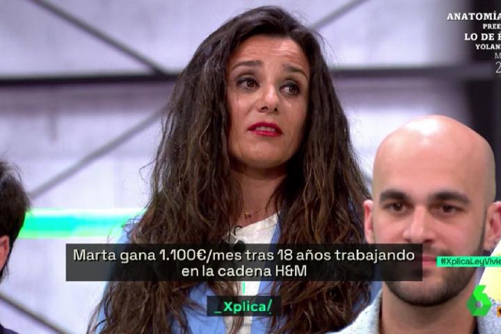Marta Latas, una dependienta que lleva trabajando desde hace 18 años en la tienda de ropa H&M, protagonizó este sábado en laSexta Xplica uno de los discursos más aplaudidos. De hecho, la invitada se llevó una rotunda ovación del público y de buena parte de sus compañeros.