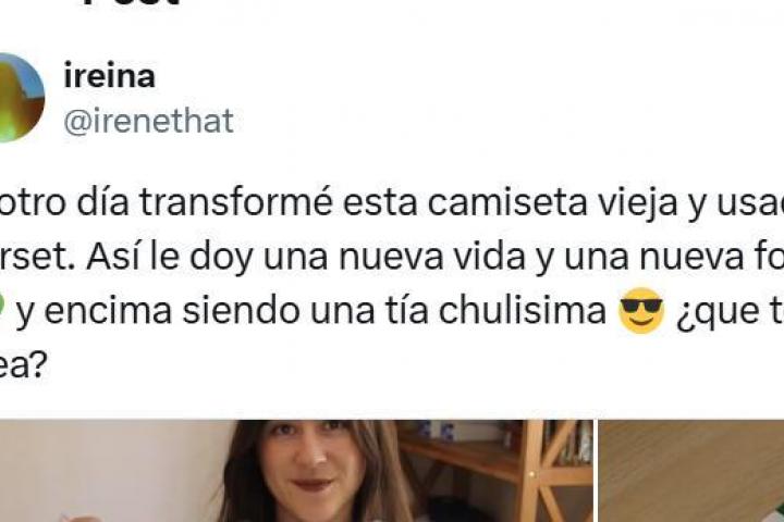 "El otro día transformé esta camiseta vieja y usada del @RealBetis en este corset. Así le doy una nueva vida y una nueva forma de llevar a tu equipo y encima siendo una tía chulísima. ¿Qué te parece? ¿Te gusta la idea?", ha publicado la usuaria.
