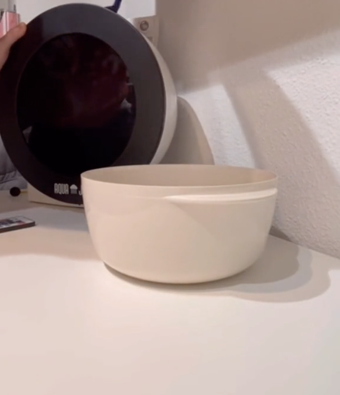 De la bolsa las pasa a un bol donde les pone un tipo de agua concreto, el que viene en la bolsa, después con un cucharón va echando agua del medusario para que se vayan aclimatando.