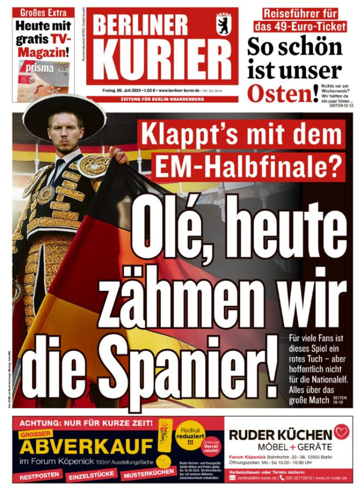 De todos los medios de comunicación del país germano, si hay uno que llama mucho la atención por la forma en la que lo enfoca es el Berliner Kurier de la capital alemana. Su portada ha traspasado fronteras y ha llegado a España.