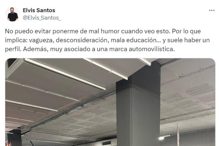"No puedo evitar ponerme de mal humor cuando veo esto. Por lo que implica: vagueza, desconsideración, mala educación… y suele haber un perfil. Además, muy asociado a una marca automovilística", ha escrito Santos junto a la foto.