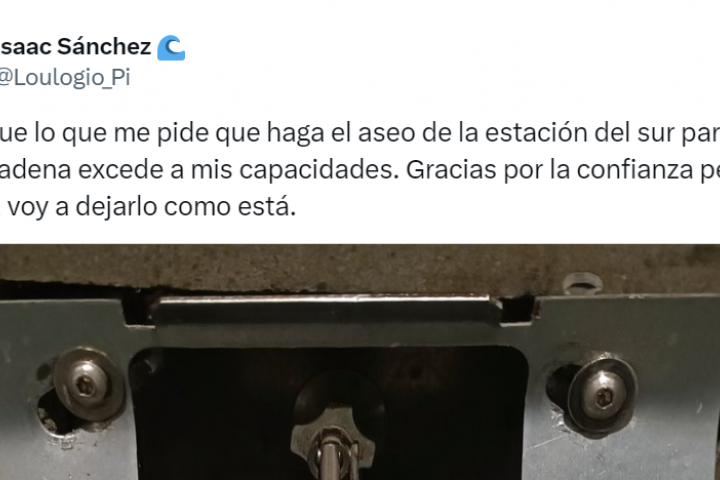 "Creo que lo que me pide que haga el aseo de la estación del sur para tirar de la cadena excede a mis capacidades", ha comentado al inicio del tuit.