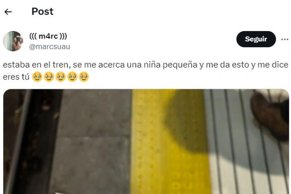 El usuario de X @marcsuau ha publicado la fotografía de un dibujo que le ha hecho "una niña pequeña" mientras viajaba en el tren.