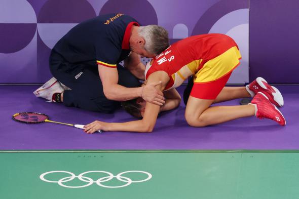 Lo que hizo el locutor italiano al ver la lesión de Carolina Marín da la vuelta a mundo