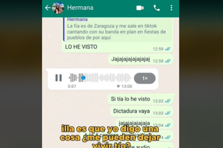 "Yo digo una cosa, ¿me pueden dejar vivir, tío? ¿Ya no puedo salir ni a fumarme un cigarro a un puto bar con una cerveza?", ha manifestado la chica en el audio de una conversación de Whatsapp, que ha sido publicado en un vídeo de TikTok de @prendizfinanciero33, acumulando ya 670.000 visualizaciones.