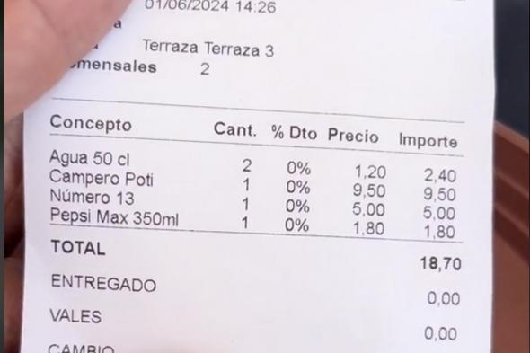 Por último ha señalado que esto lo ha comido en el bar Ñam Ñam Poti y ha mostrado la cuenta que asciende a 18,70. El campero ha sido lo más caro y ha costado sólo 9,50 euros.