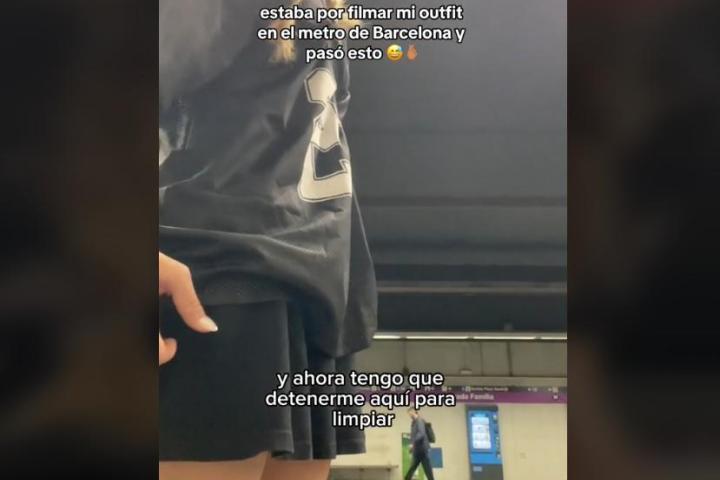 En el vídeo, que dura poco más de medio minuto, se puede ver como la usuaria había dejado el móvil en el suelo de la estación de metro de Barcelona Sagrada Familia y se disponía a grabarse para enseñar el 'outfit'. Sin embargo, ahí apareció una limpiadora del suburbano catalán para robarle todo el protagonismo.