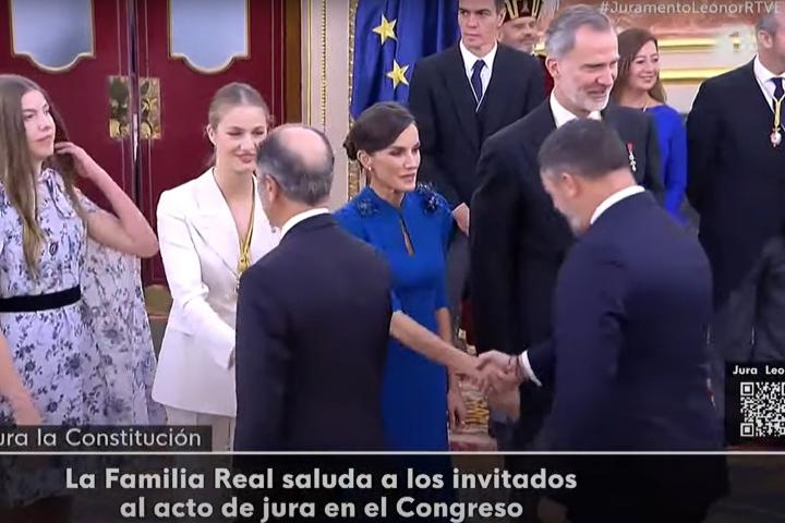 La reina estaba sonriente, saludando a las autoridades, y muchos han considerado que ha cambiado el gesto, poniéndose muy seria, al dar la mano al político de Vox.