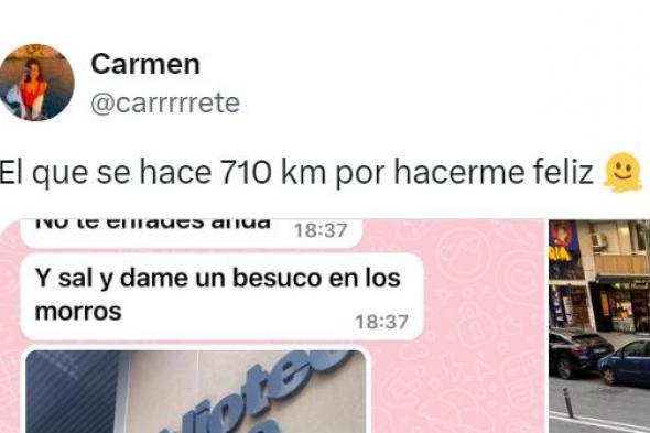 Para ello, la protagonista de la historia ha escrito un "él que se hace 710 km por hacerme feliz 🫠" junto a dos pantallazos, uno de la conversación de WhatsApp que ha mantenido con su pareja y otro el desenlace.